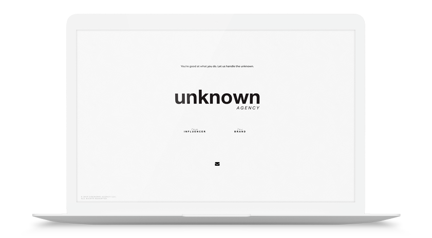 Unknown Agency wanted an icon that would not only work alongside the full logo, but also stand on its own when necessary (twitter, instagram or embroidery). This mark manages to be both the edgy "U" in unknown – as well as the "A" in agency when flipped vertically."